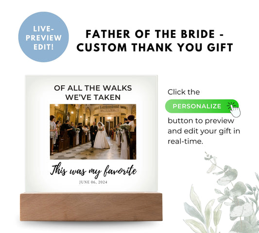 Father Of The Bride Thank You Gift | Custom Acrylic Frame Photo Upload