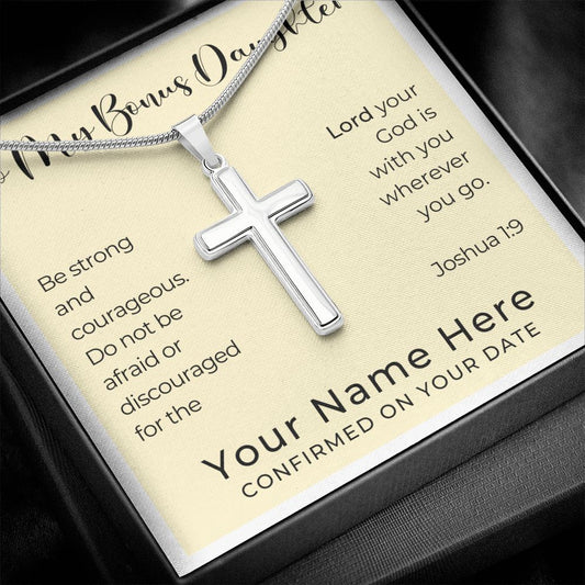 Personalized Confirmation Gift for Girl - Bonus Daughter | Cross Stainless Steel Necklace 0823T2SSCN