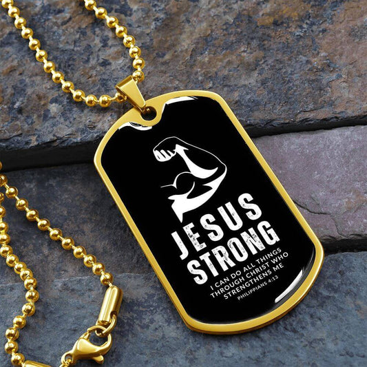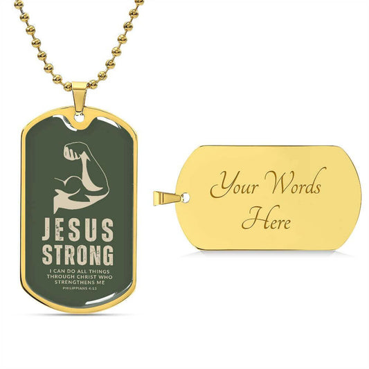 Christian Gifts For Men - Jesus Strong Dog Tag Necklace 13DTN