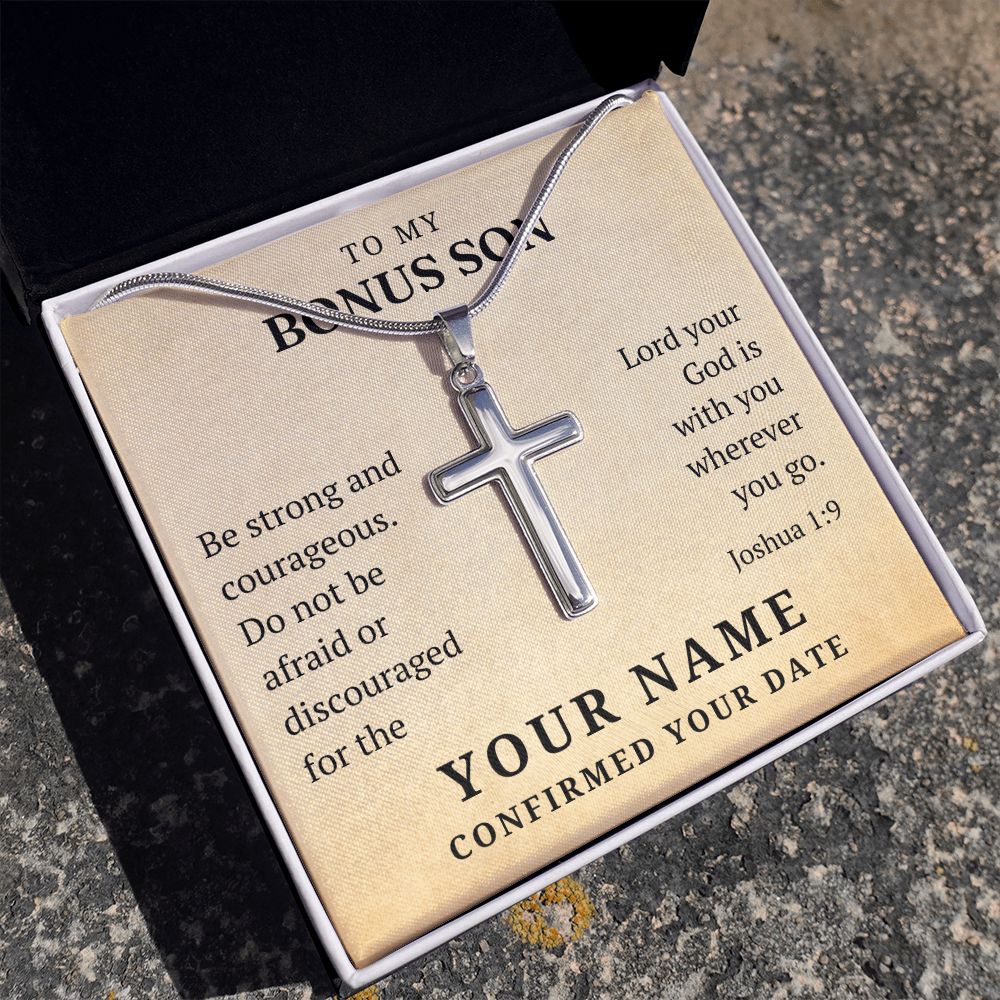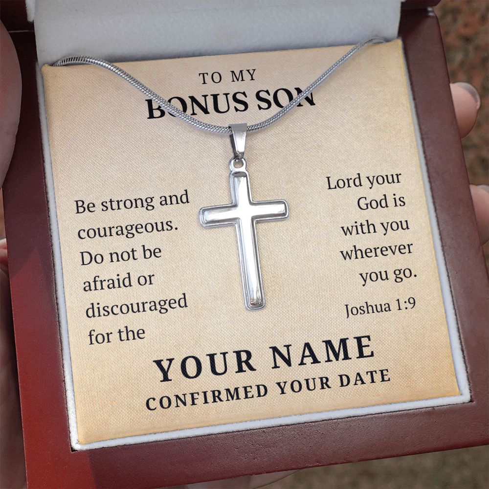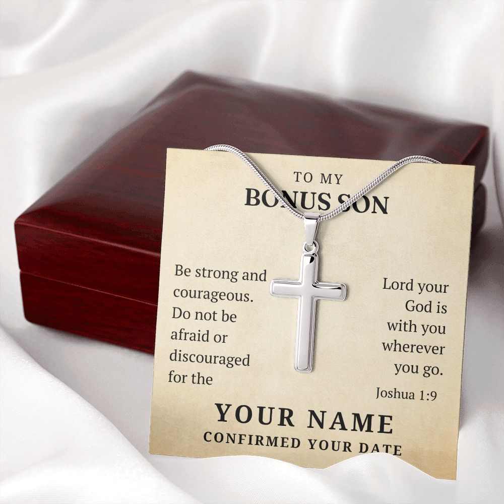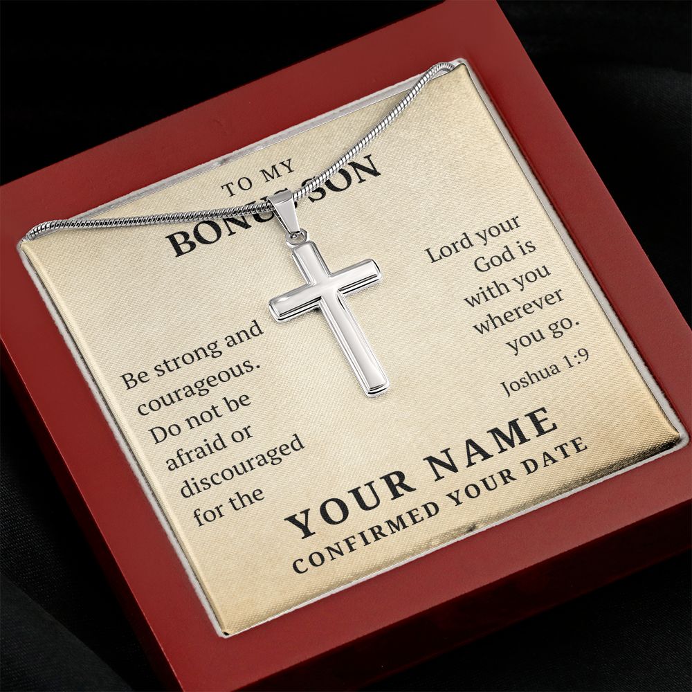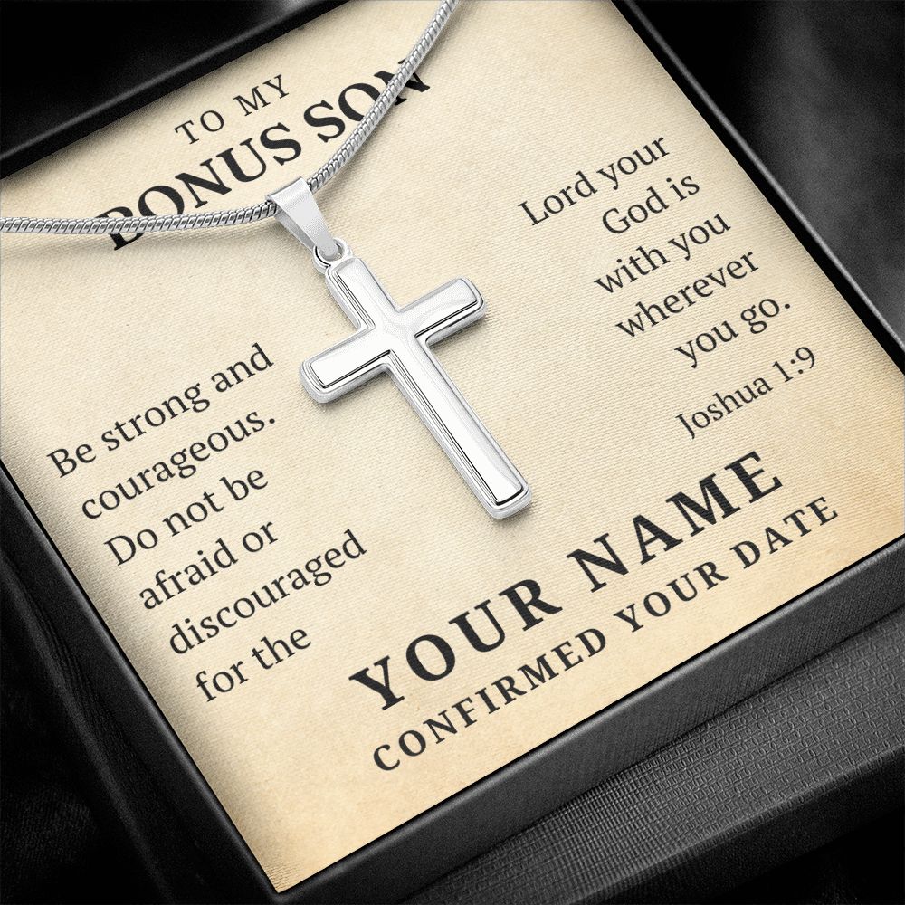 Personalized Confirmation Gift For Boy - Bonus Son | Be Strong Cross Necklace 0803T2SSCN
