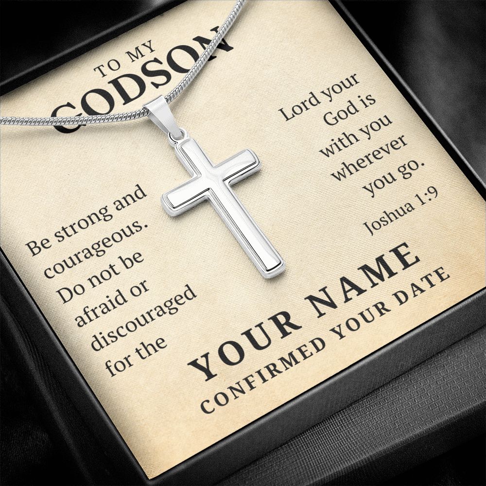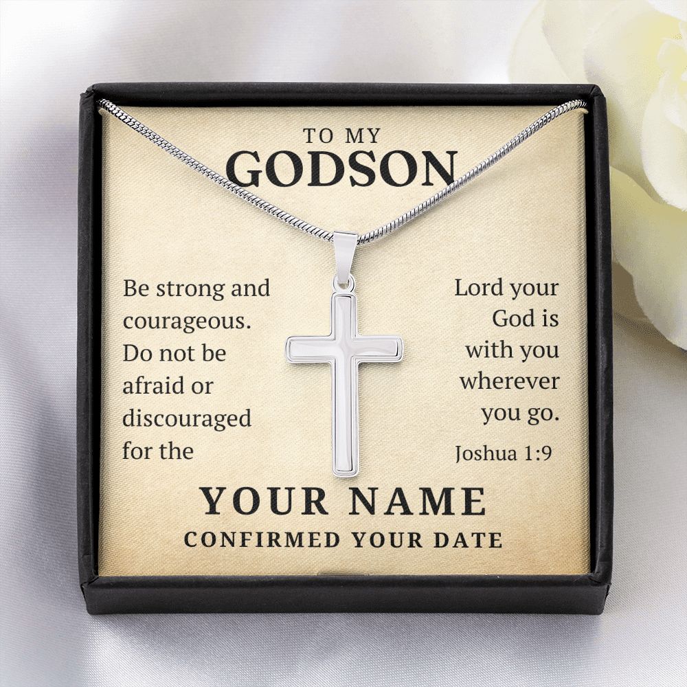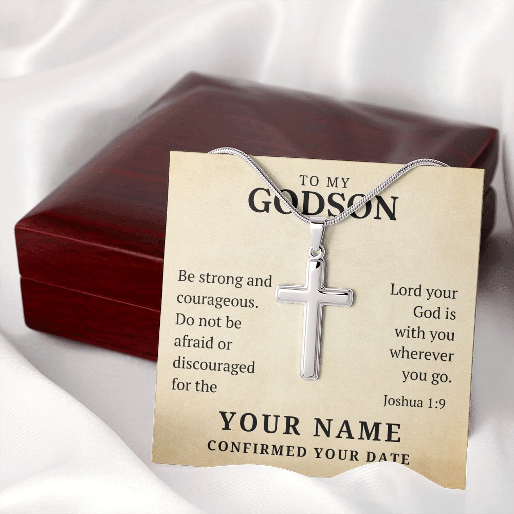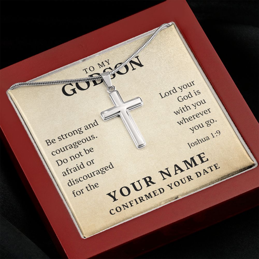 Personalized Confirmation Gift For Boy - Godson | Be Strong Cross Necklace 0826T2SSCN