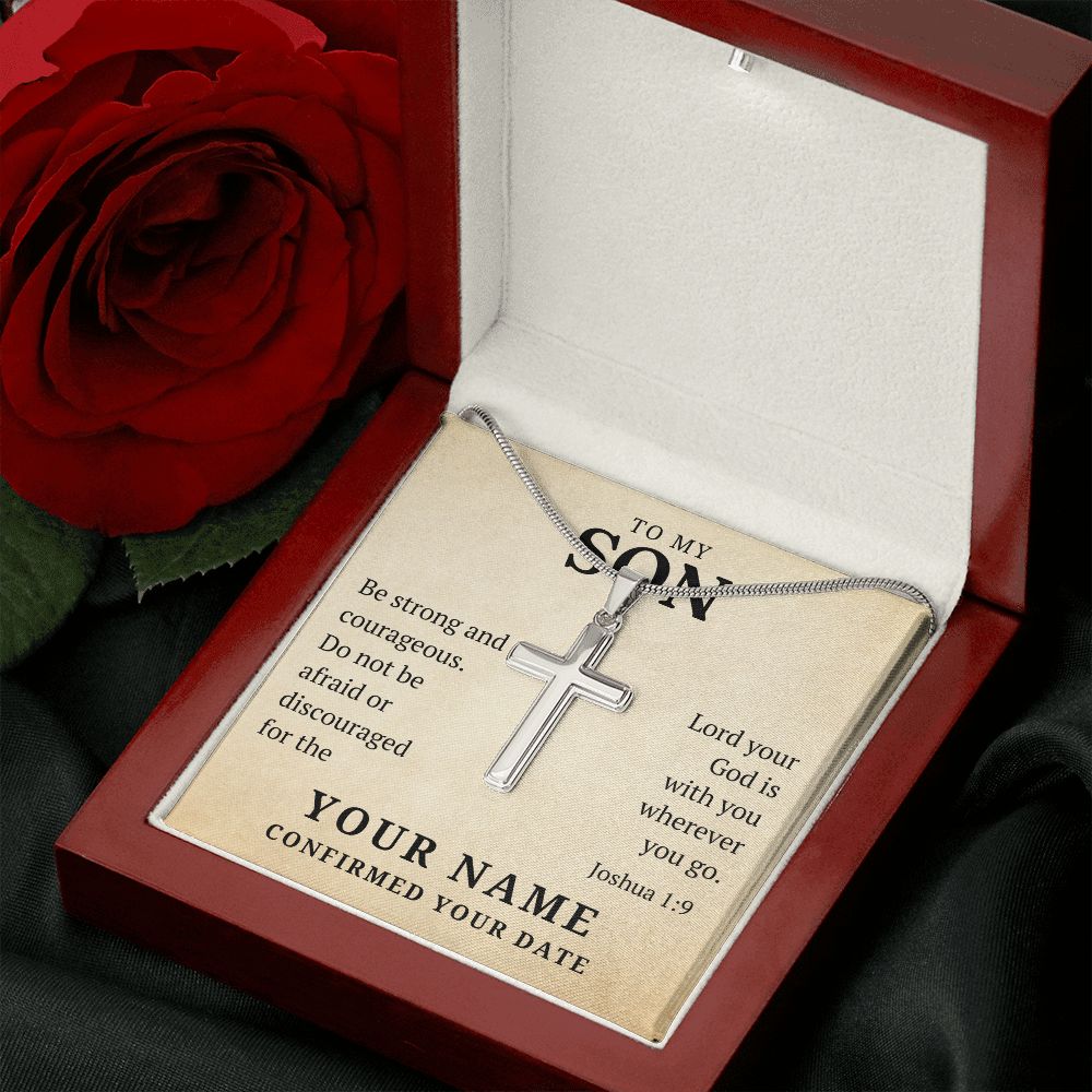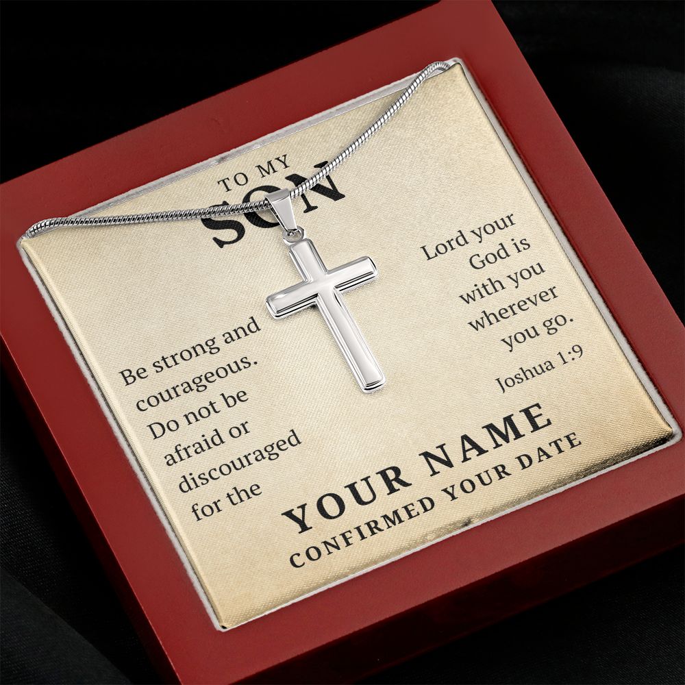 Personalized Confirmation Gift For Boy - Son | Be Strong Cross Necklace 0804T2SSCN
