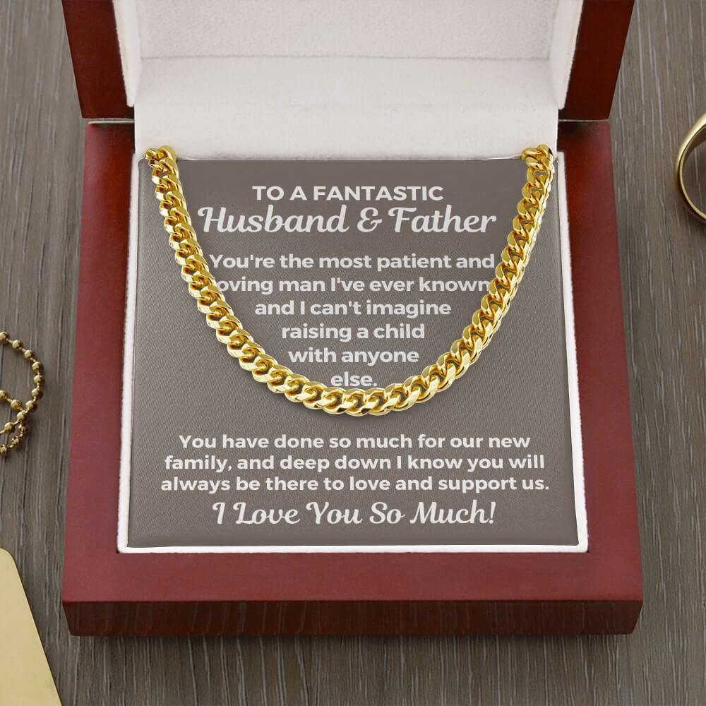 Surprise your husband with a timeless and stylish Cuban Link Chain necklace that he can wear with almost anything - a perfect gift for a new dad! Our Cuban link necklace is available in polished stainless steel and in a 14k yellow gold over stainless steel finish. The Cuban link necklace has an adjustable chain that measures 18" - 22" and fastens with a parrot clasp to keep it secure. This beautiful necklace is also one of the best unique birthday gift ideas because it comes in a luxury wooden gift box that features a LED light with a sweet, heartfelt message that will surely make your husband feel loved and appreciated!