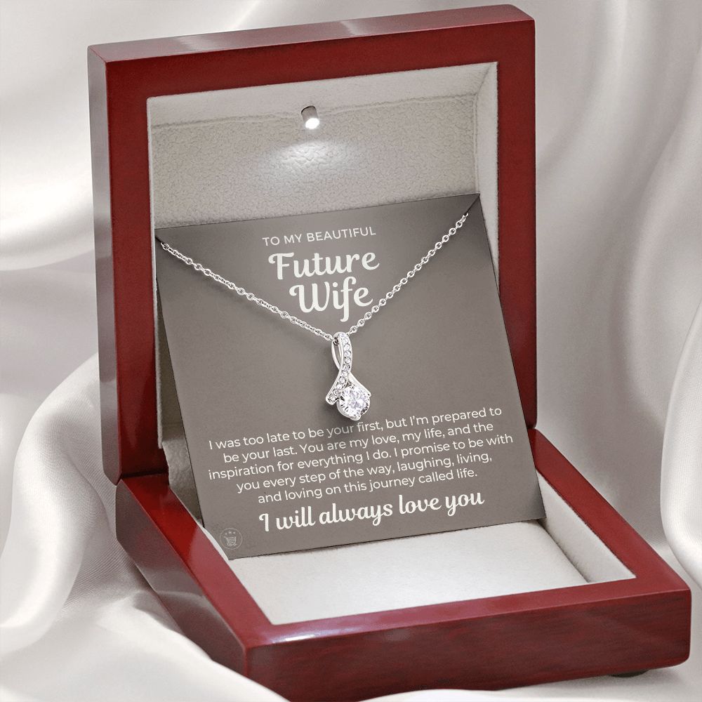 If you’re looking for a unique and special gift to give your future wife on a special occasion, then look no further! This beautiful necklace is crafted with love and thoughtfulness. The pendant necklace comes in an elegant gift box with a sweet message that will surely make your future wife feel loved and appreciated!
