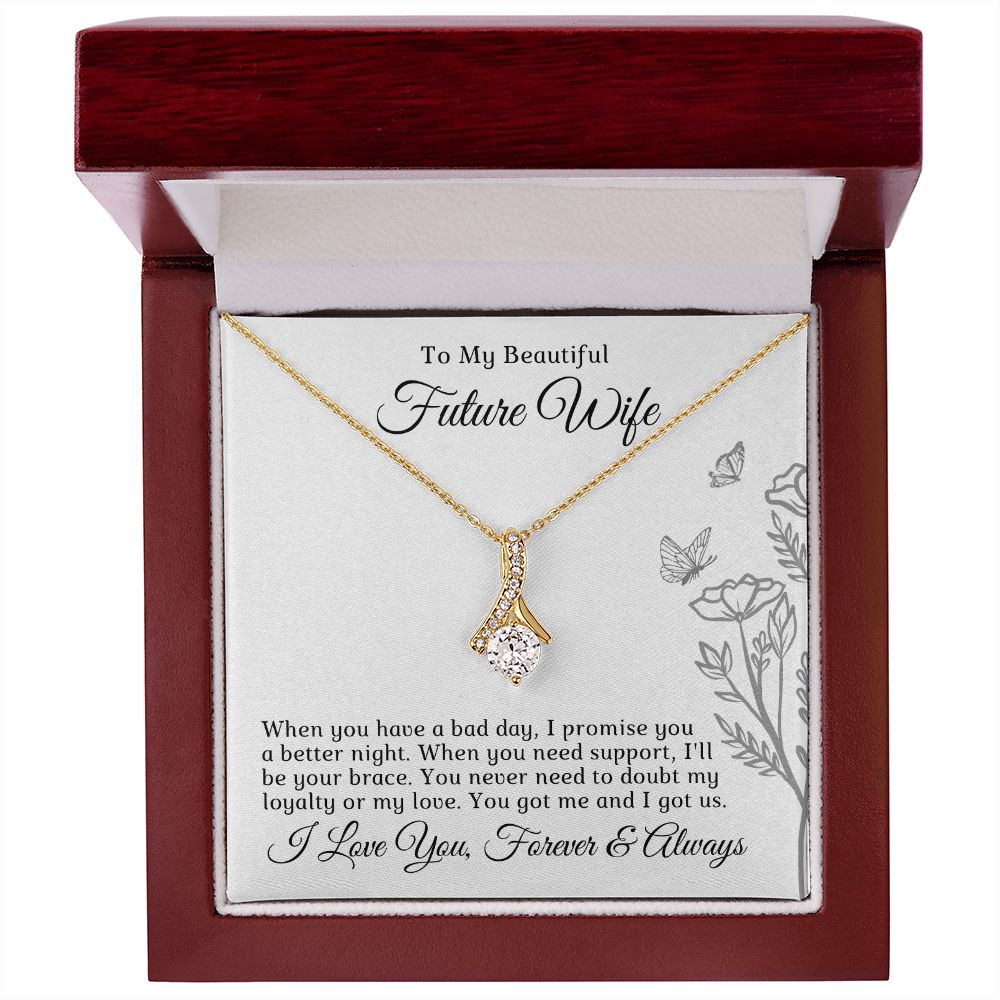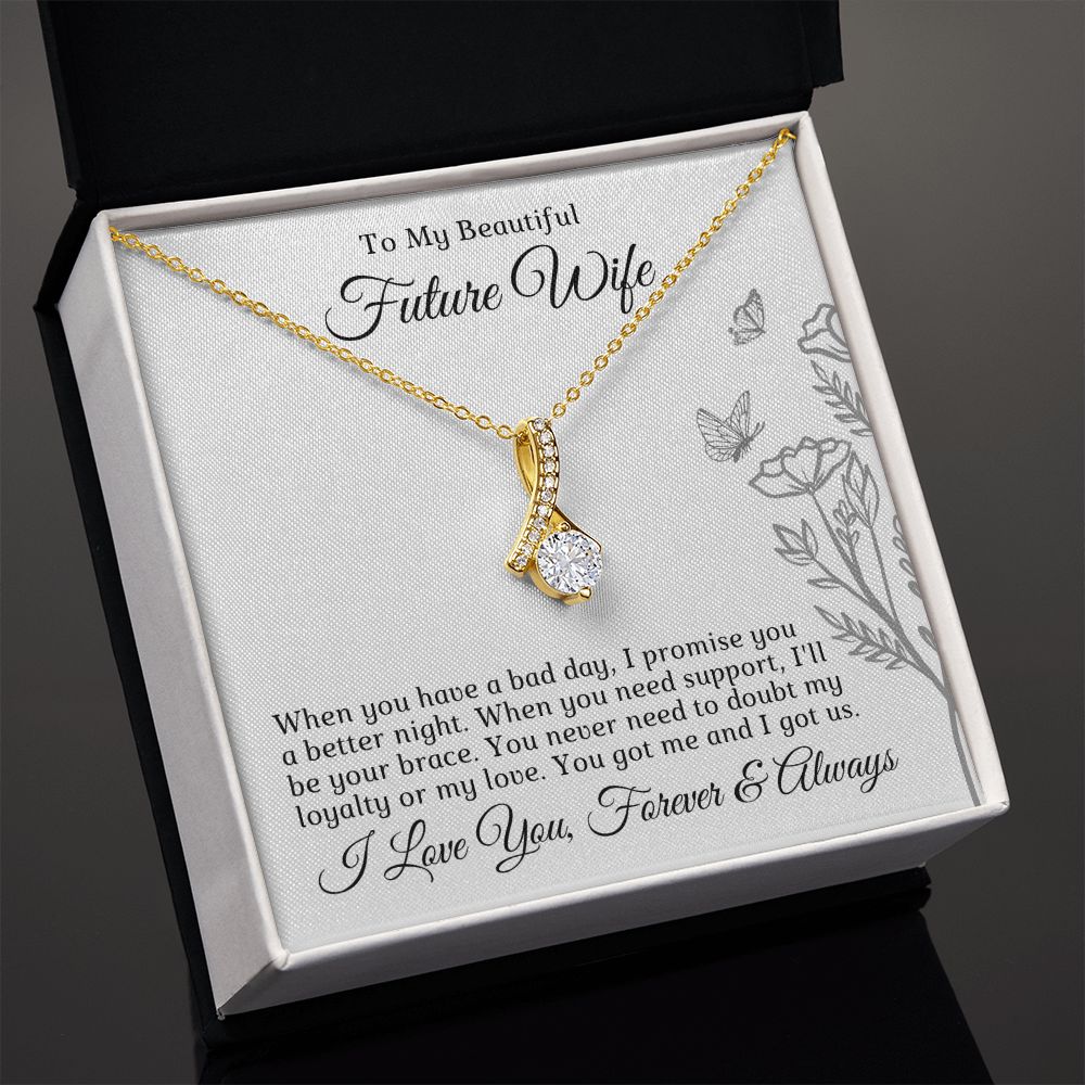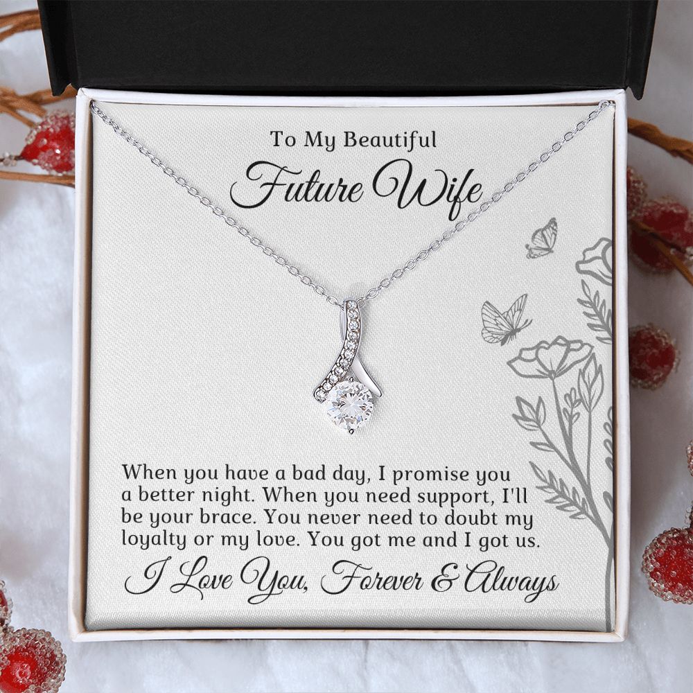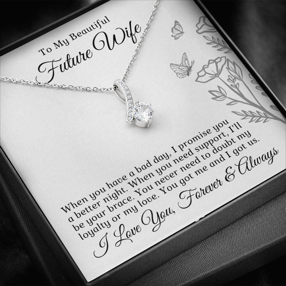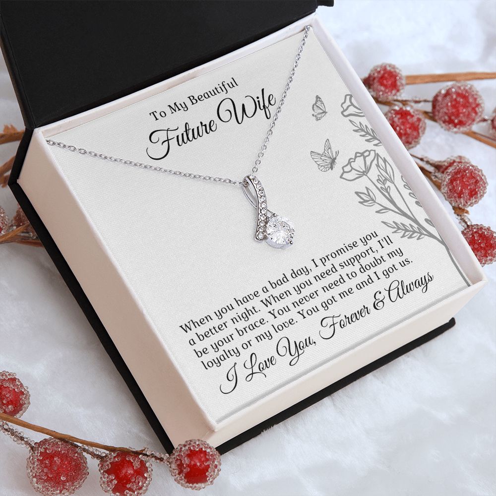 If you’re looking for a unique and special gift to give your future wife on a special occasion, then look no further! This beautiful necklace is crafted with love and thoughtfulness. The pendant necklace comes in an elegant gift box with a sweet message that will surely make your future wife feel loved and appreciated!