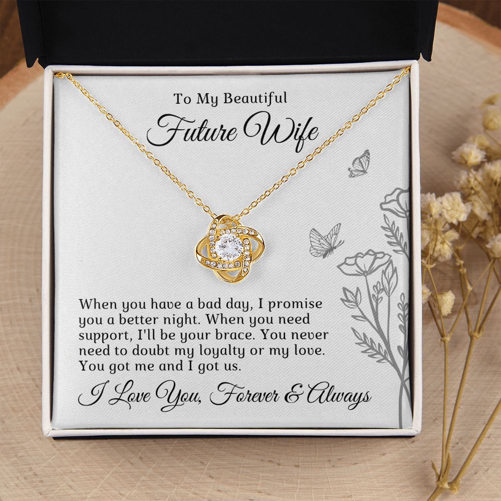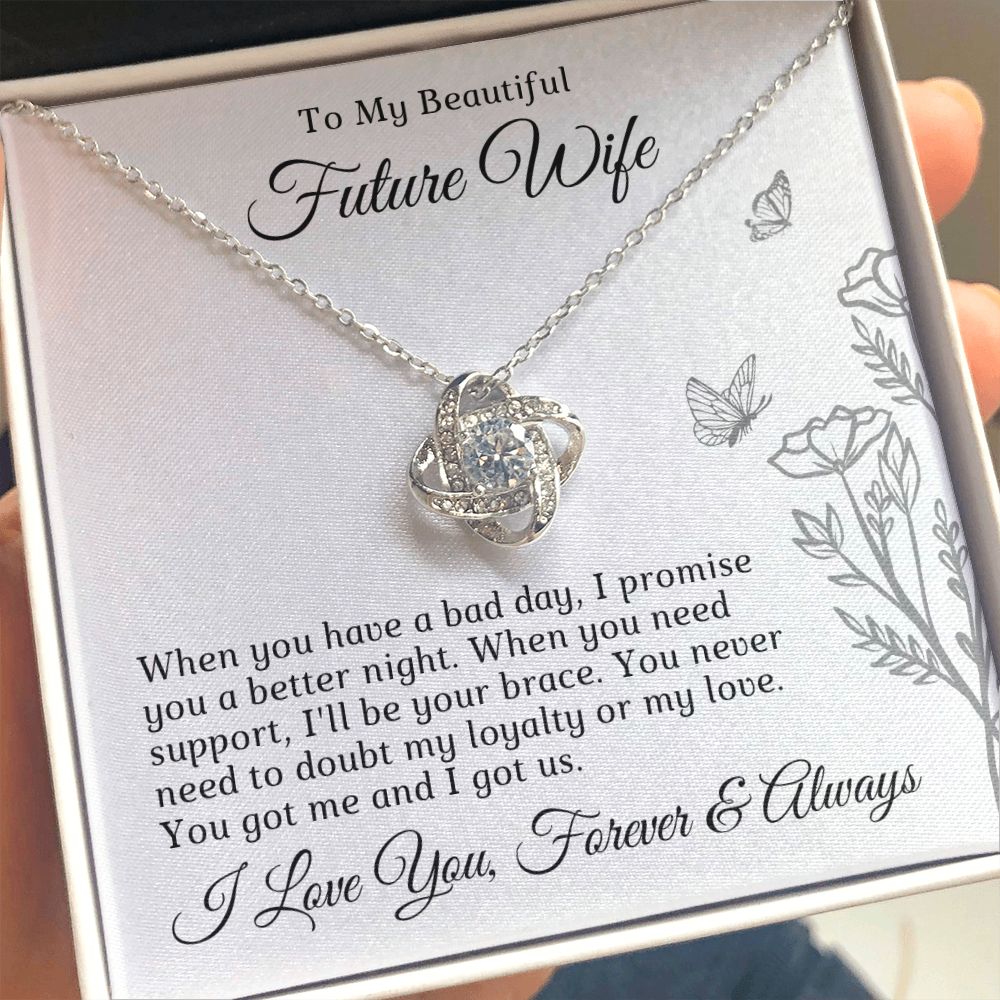If you’re looking for a unique and special gift to give your future wife on a special occasion. This beautiful necklace is crafted with love and thoughtfulness. The pendant necklace comes in an elegant gift box with a sweet message that will surely make your future wife feel loved and appreciated!