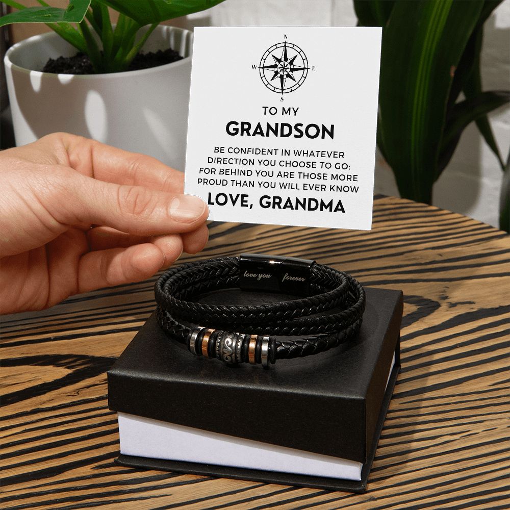 Gift For Grandson From Grandma | Proud Leather Bracelet 0857BT1