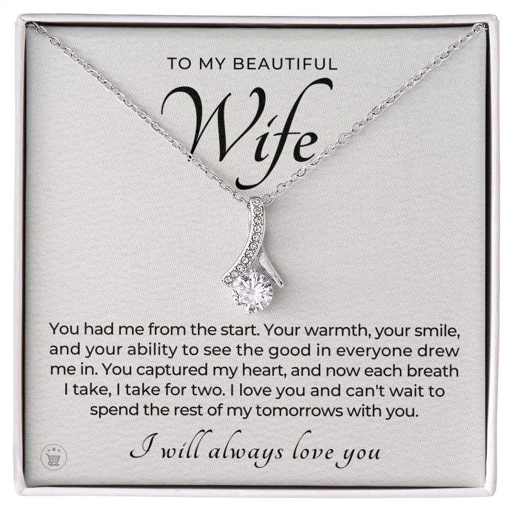 If you’re looking for a unique and special gift to give your wife on a special occasion, then look no further! This beautiful necklace is crafted with love and thoughtfulness. The pendant necklace comes in an elegant gift box with a sweet message that will surely make your wife feel loved and appreciated!