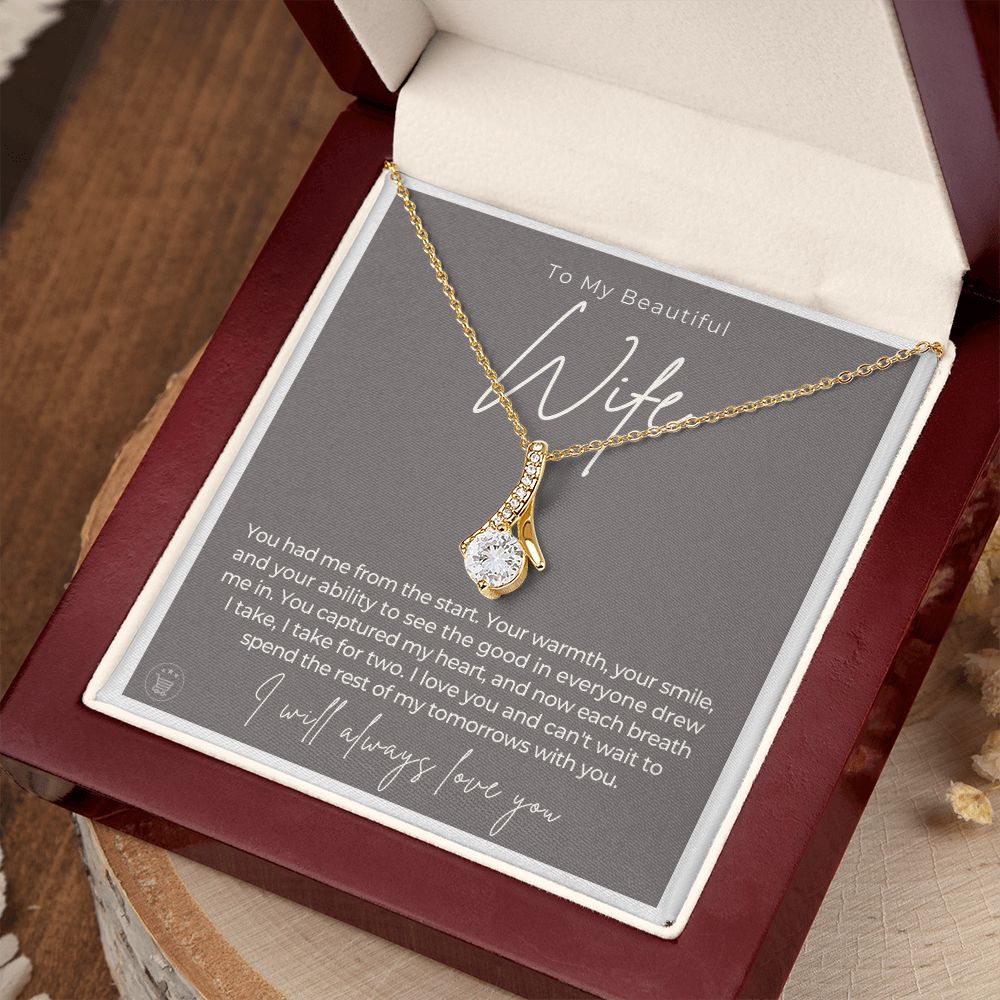 If you’re looking for a unique and special gift to give your wife on a special occasion, then look no further! This beautiful necklace is crafted with love and thoughtfulness. The pendant necklace comes in an elegant gift box with a sweet message that will surely make your wife feel loved and appreciated!