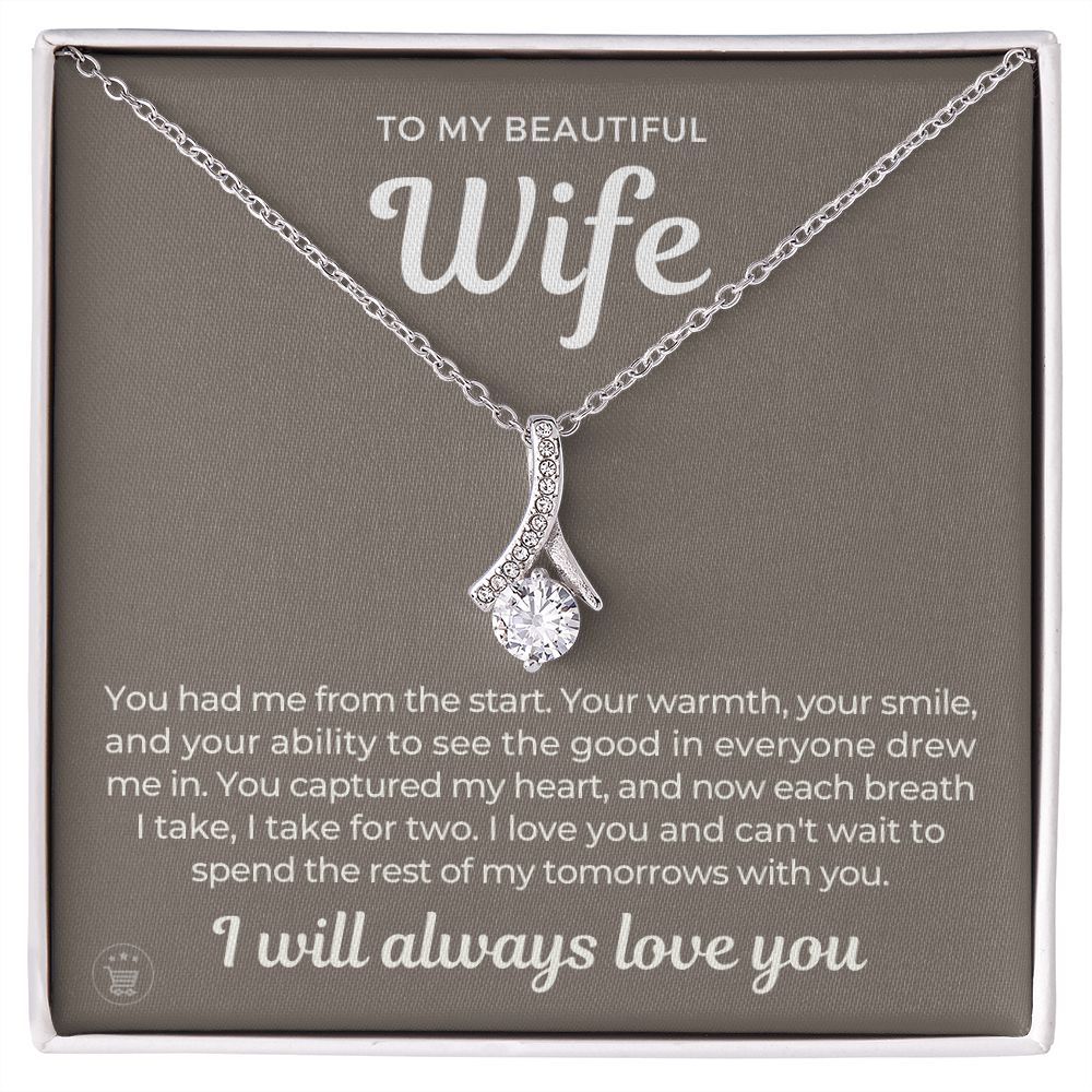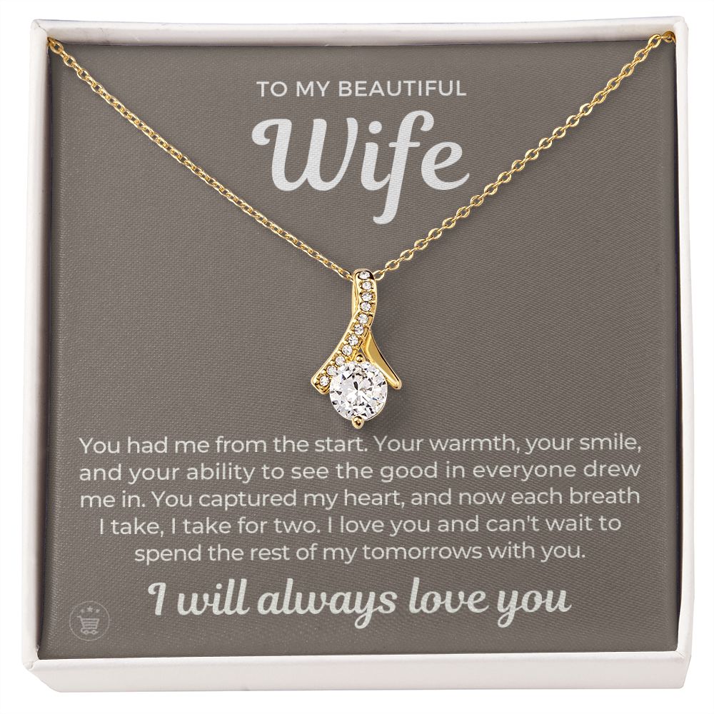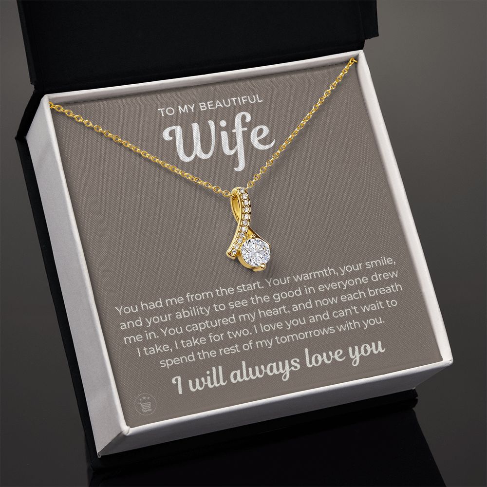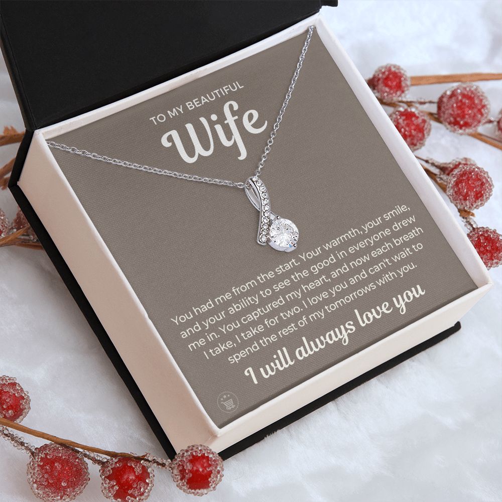 If you’re looking for a unique and special gift to give your wife on a special occasion, then look no further! This beautiful necklace is crafted with love and thoughtfulness. The pendant necklace comes in an elegant gift box with a sweet message that will surely make your wife feel loved and appreciated!