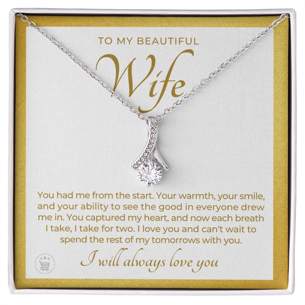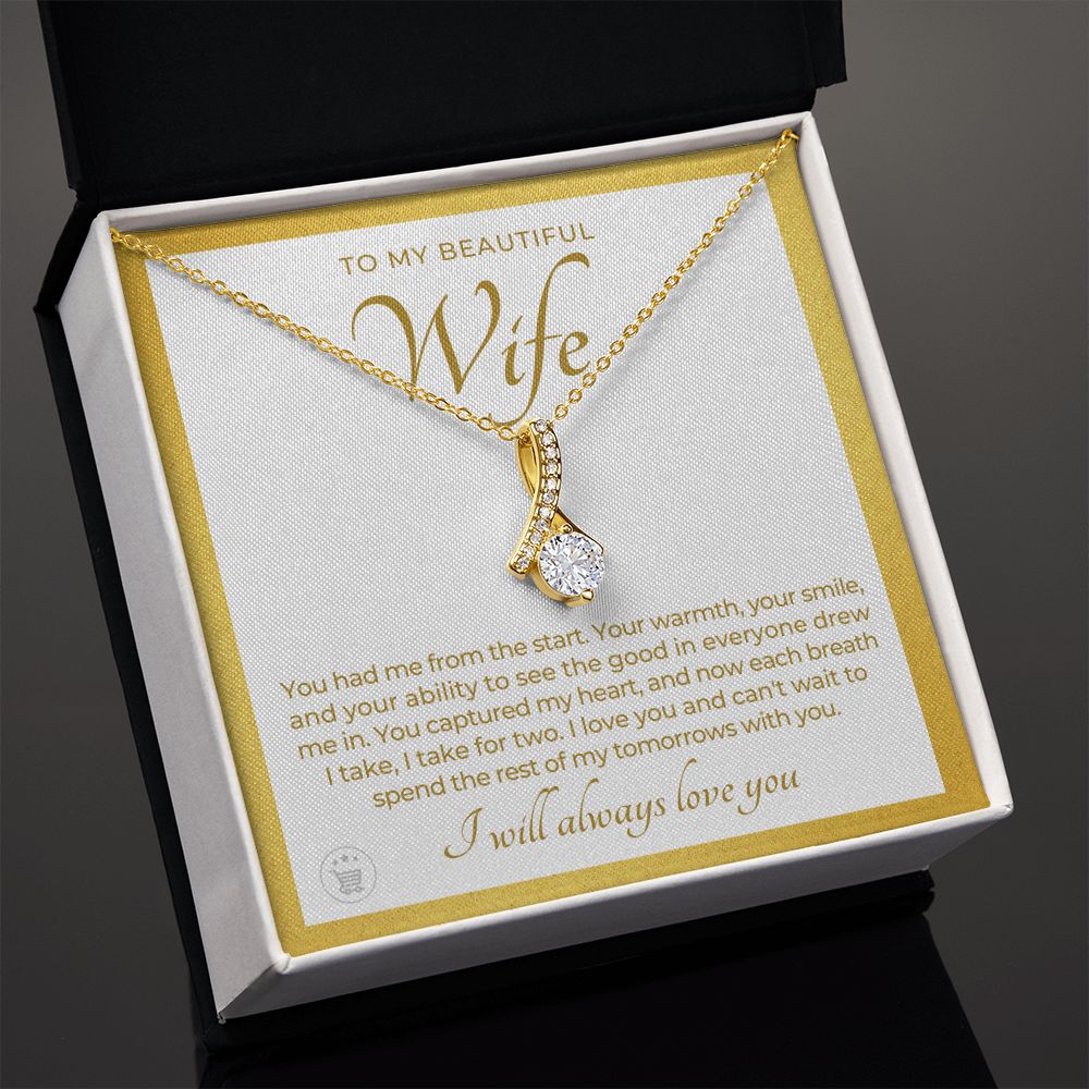 If you’re looking for a unique and special gift to give your wife on a special occasion, then look no further! This beautiful necklace is crafted with love and thoughtfulness. The pendant necklace comes in an elegant gift box with a sweet message that will surely make your wife feel loved and appreciated!