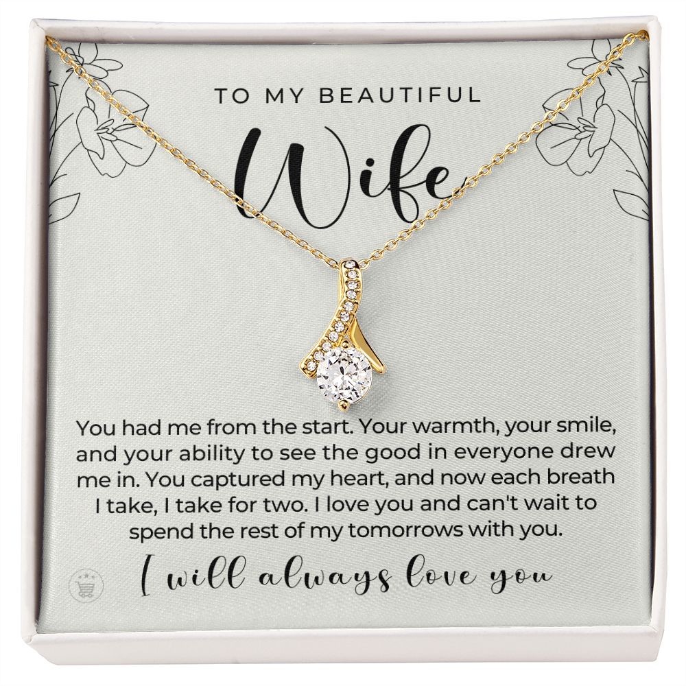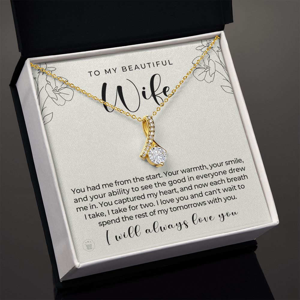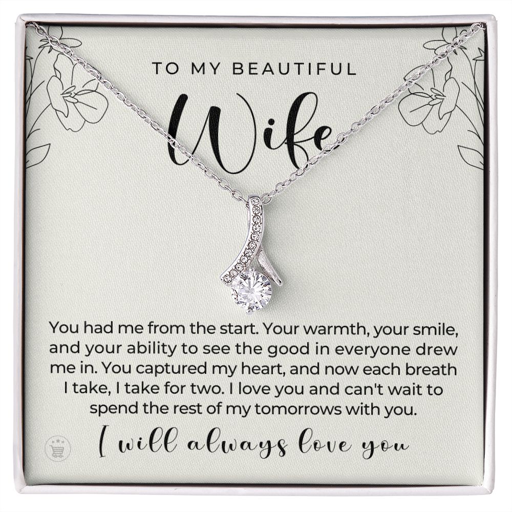 If you’re looking for a unique and special gift to give your wife on a special occasion, then look no further! This beautiful necklace is crafted with love and thoughtfulness. The pendant necklace comes in an elegant gift box with a sweet message that will surely make your wife feel loved and appreciated!
