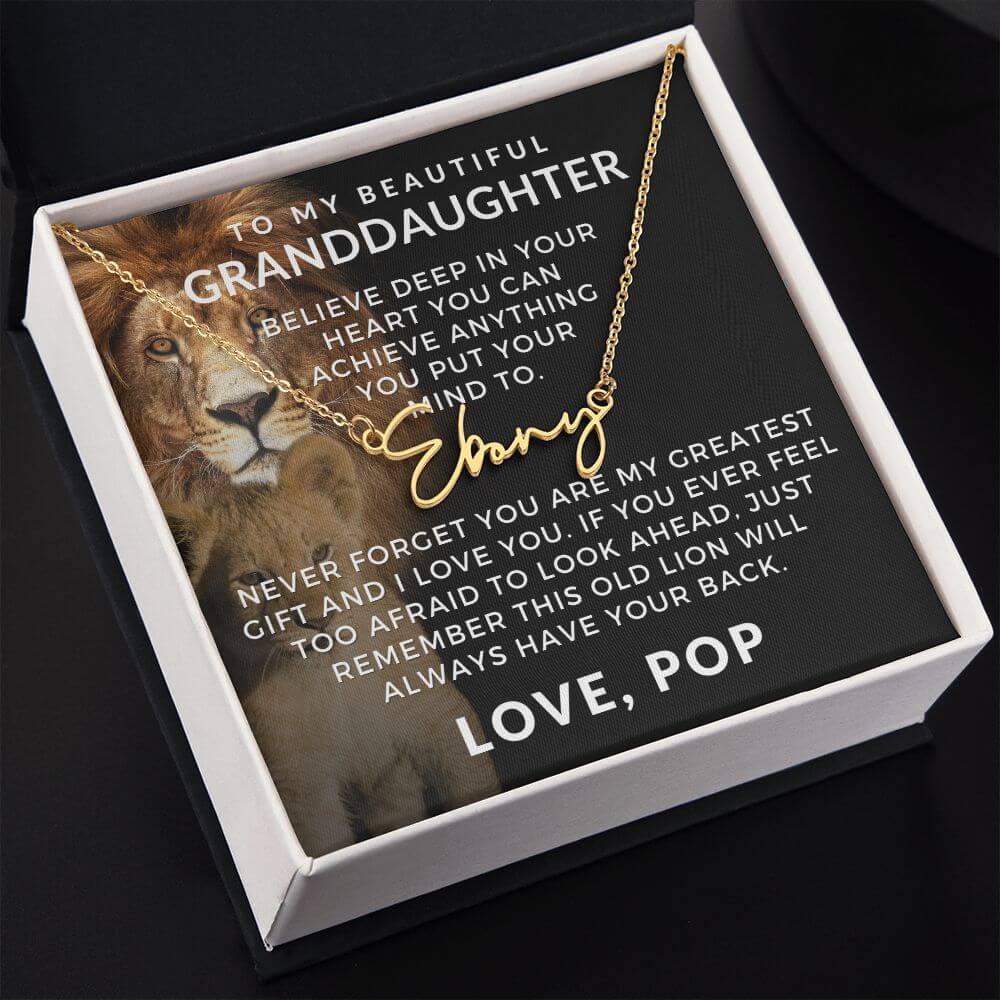 Personalized Granddaughter Gift From Pop | Greatest Gift Signature Name Necklace 0728SNNT1