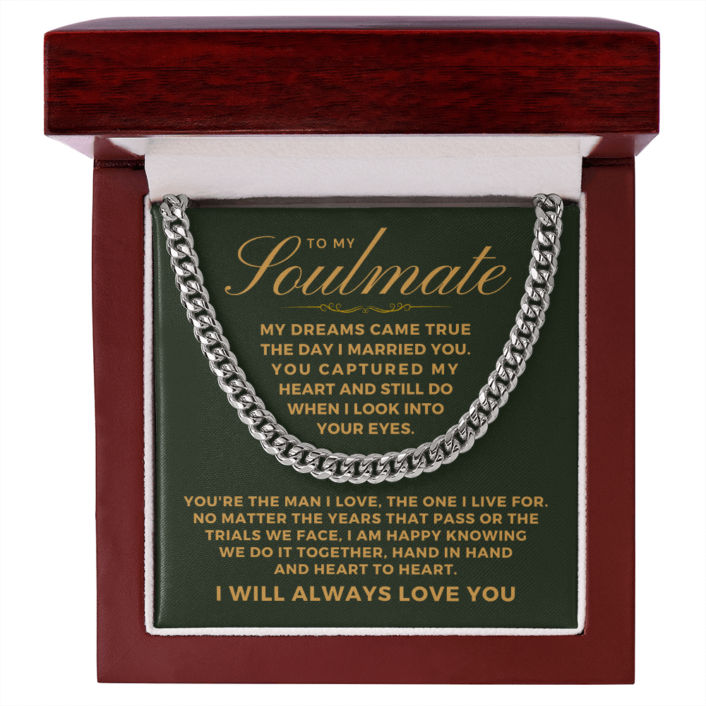 Surprise him with a timeless and stylish Cuban Link Chain necklace that he can wear with almost anything - a perfect gift for your soulmate! Our Cuban link necklace is available in polished stainless steel and in a 14k yellow gold over stainless steel finish. The Cuban link necklace has an adjustable chain that measures 18" - 22" and fastens with a parrot clasp to keep it secure. This beautiful necklace is also one of the best unique birthday gift ideas because it comes in a luxury wooden gift box that features a LED light with a sweet, heartfelt message that will surely make him feel loved and appreciated!