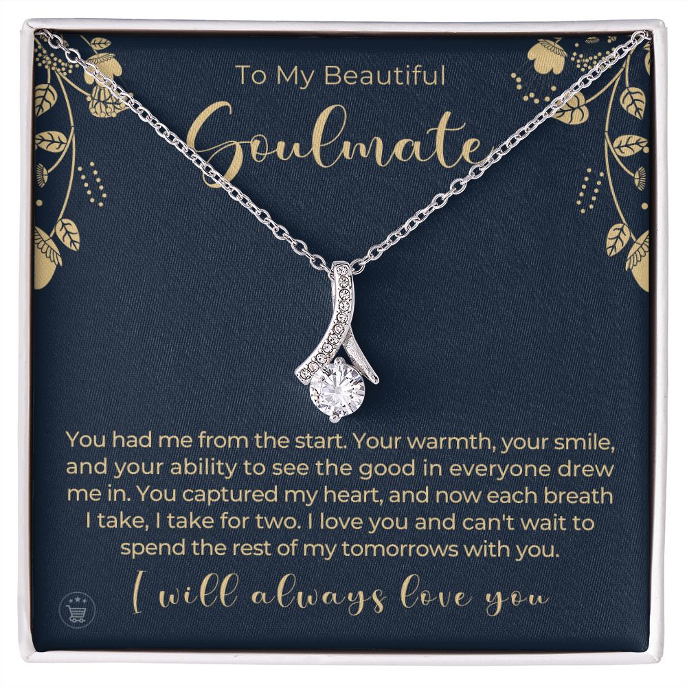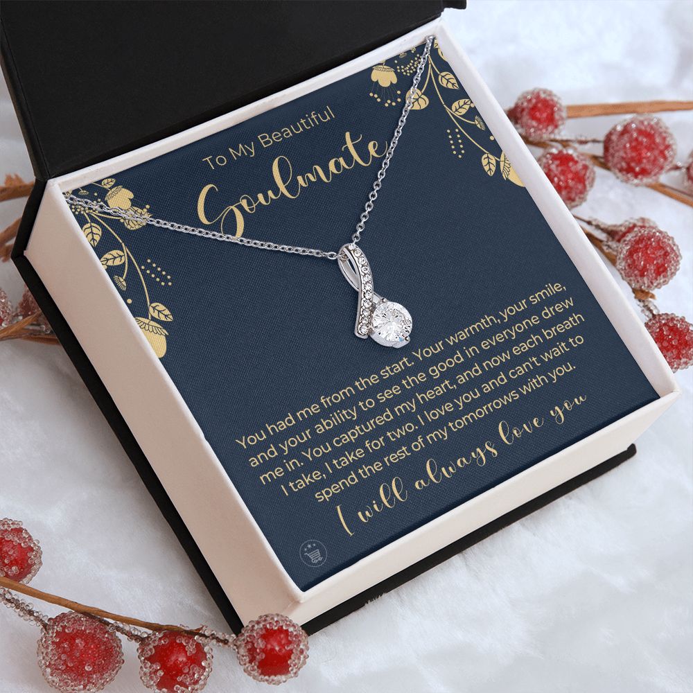If you’re looking for a unique and special gift to give your soulmate on a special occasion, then look no further! This beautiful necklace is crafted with love and thoughtfulness. The pendant necklace comes in an elegant gift box with a sweet message that will surely make your soulmate feel loved and appreciated!