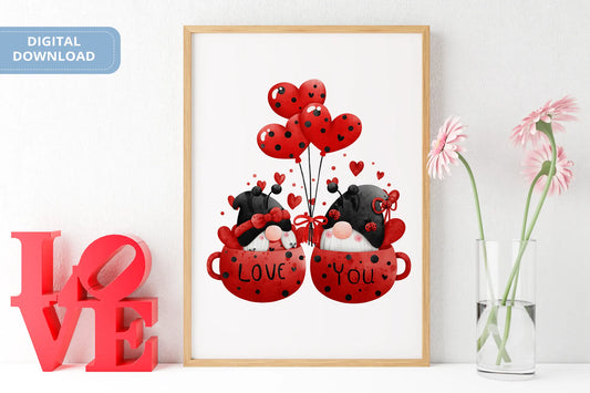 Valentines Printable Digital Download | Lady Bug Gnome Clipart PNG 46