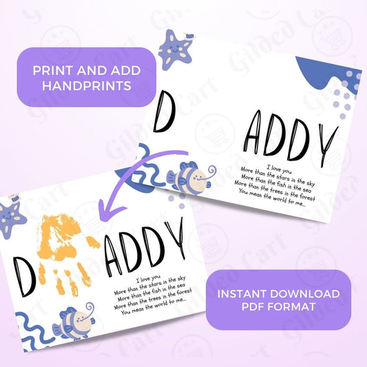 Printable Handprint Art |Father's Day Birthday Digital Download Gift for Dad 034