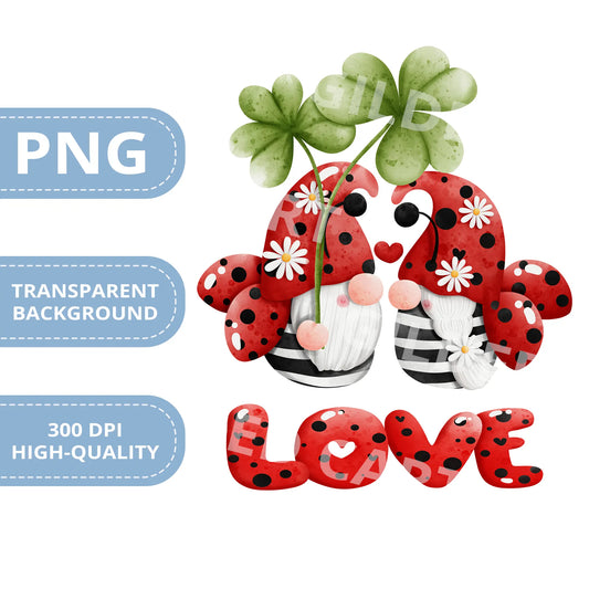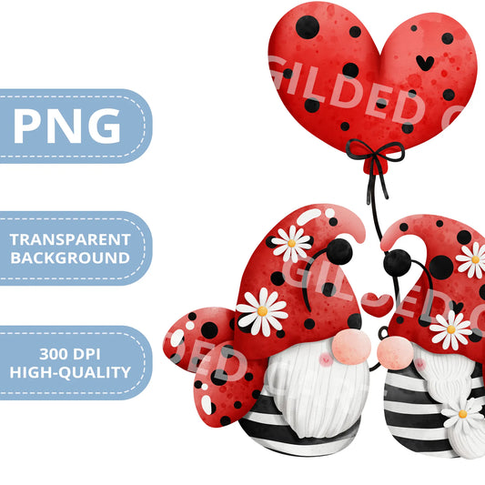Valentines Printable Digital Download | Lady Bug Gnome Clipart PNG 47