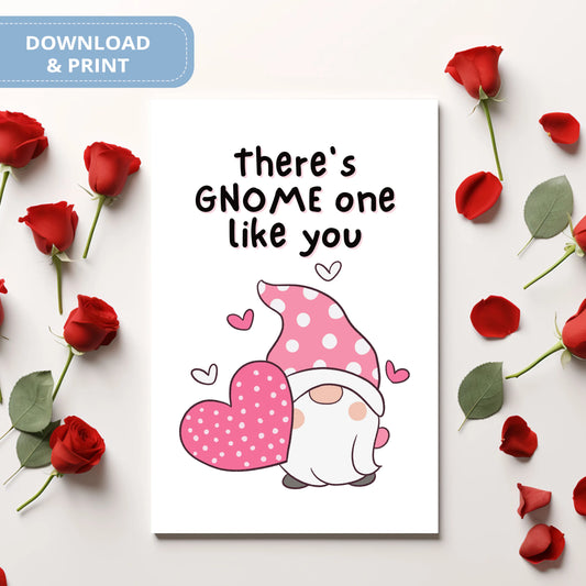 Valentines Card Printable Digital Download | There's Gnomebody Like You Valentine 42
