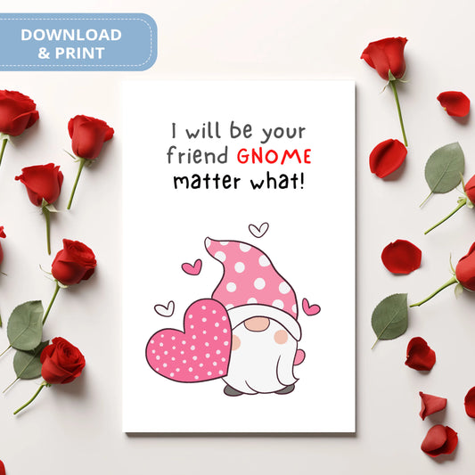 Valentines Card Printable Digital Download | I Will Be Your Friend Gnome Matter What 45