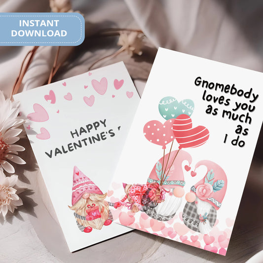 Valentines Card Printable Digital Download | Gnomebody Loves You As Much As I Do 41