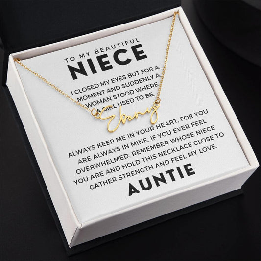 Personalized Niece Gift From Aunt | In My Heart Signature Name Necklace 0631SNNT8